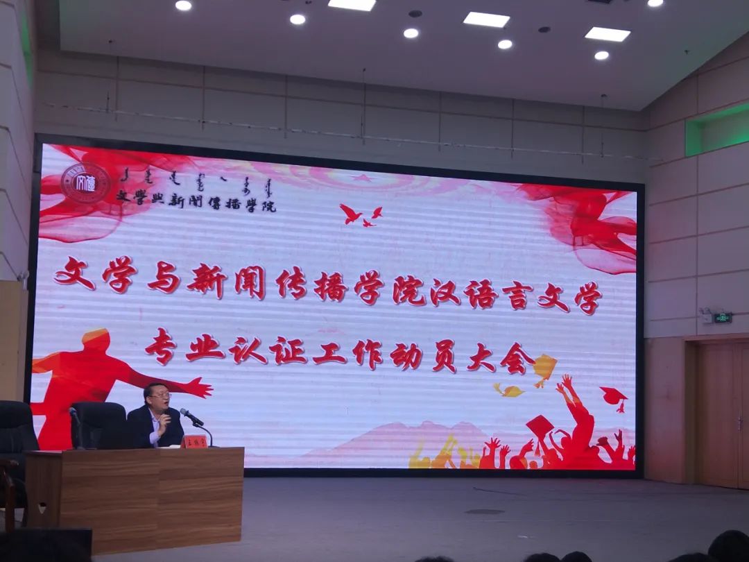 9月23日晚7时,文学与新闻传播学院汉语言文学专业认证动员大会在西拉木伦校区音乐厅举办。学院班子、教授委员会、汉语言文学专业教师以及271名汉语言文学专业学生参加动员大会。动员大会由汉语言文学系主任王金双主持。