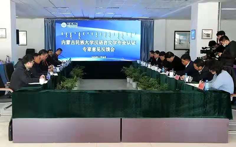 刘义兵代表专家组宣读现场考查初步认证报告。报告指出,内蒙古民族大学全面贯彻党的教育方针,落实立德树人根本任务,特别是在汉语言文学专业认证自评自建工作过程中,学校党政领导、相关部门负责人和学院师生高度重视师范类专业认证工作,在以评促建、以评促改、以评促强的持续改进过程中,取得了非常明显的成效。其亮点和专业特色具体包括:专业人才培养目标定位准确,服务民族地区基础教育贡献突出。内蒙古民族大学汉语言文学专业面向民族地区基础教育实际需求,培养了一大批能吃苦、下得去、留得住、用得上的优秀中学语文教师,用人单位满意度高,社会声誉好。本专业已经成为内蒙古东部地区重要的、不可替代的中学语文师资培养基地,为民族地区教育事业发展做出了突出贡献;形成校院两级联动的立体化育人体系,“以学生为中心”落在实处,“三全育人”收到实效;专业教学质量保障体系比较完善,持续推进引领专业创新发展。依托学校“全面监控、全程监控、全员监控”三位一体的教学质量检测体系、评价体系和教学质量保障体系,学院建立了教、考、学一体的教学质量保障体系。他通报了专家组指出共性问题:建议学校进一步研究如何建立教师分类评价制度和教师持续发展的激励机制,制定符合学校教师教育高质量发展的、更加科学合理的、分级分类的教师评价办法;“十四五”期间,如何通过创新体制机制,不断挖掘自身潜力,进一步深入探讨民族地区综合性大学如何实现教师教育的有特色、高质量发展;进一步创新师范生人才培养模式,进一步参考民族地区“4+2”培养模式,整合校内外资源,追求卓越,建设民族特色的高质量人才培养基地。