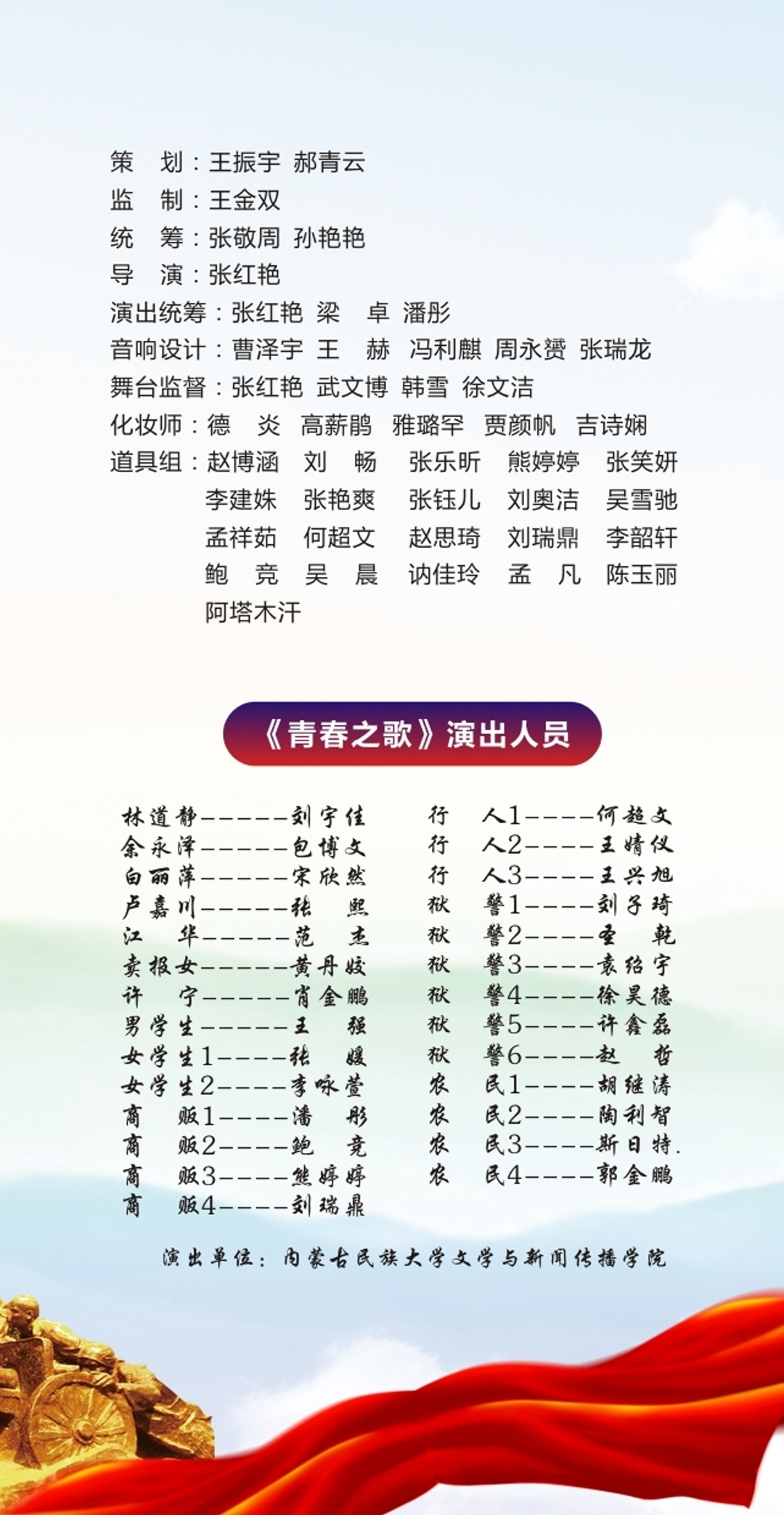 “用我们的热血和激情,唱响青春的赞歌!”6月18日,随着演员们激情的呐喊和观众们的热烈掌声,由我院师生排演的情景短剧《青春之歌》在霍林河校区大礼堂落下帷幕。