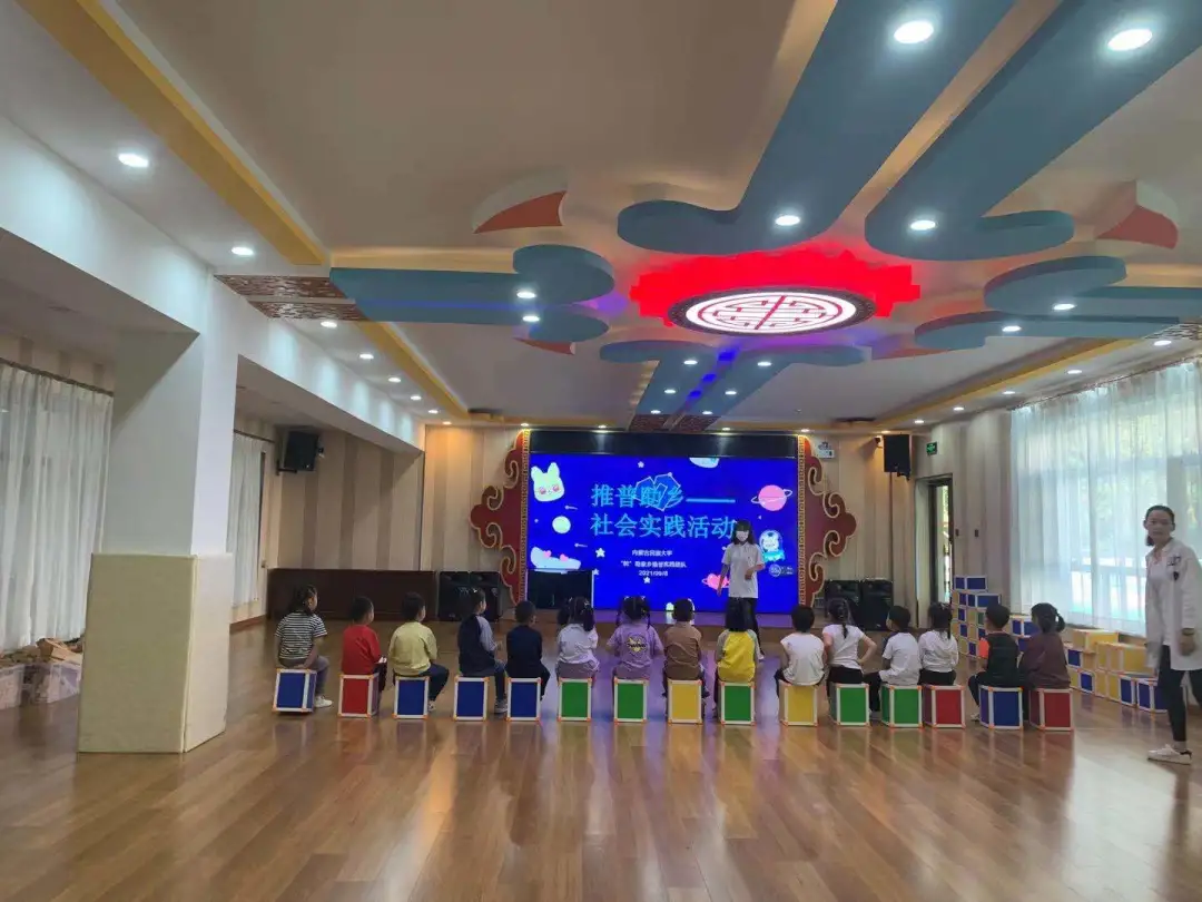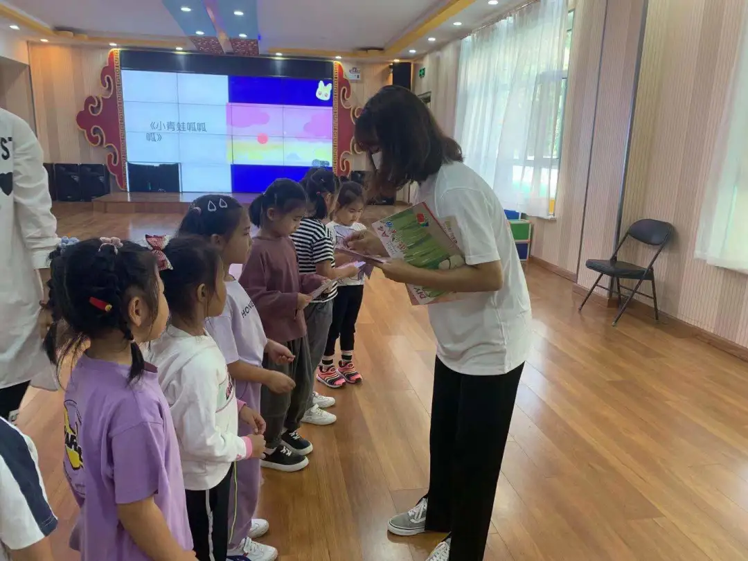 9月8日,实践团来到了莫力达瓦达斡尔族自治旗第一民族幼儿园,和小朋友们一起做游戏、讲故事,在这些愉快轻松的活动中,了解幼儿园小朋友们整体的普通话情况。幼儿园中绝大部分的孩子是少数民族,但是他们平时在幼儿园都会讲普通话。实践团还了解到,幼儿园老师会和小朋友们用普通话进行沟通交流,在幼儿园里说普通话、讲普通话是非常普遍的。实践团希望孩子们能提高动手能力,便为他们带去了精美的卡纸和折纸作为礼物,孩子们非常开心,与实践团相处得十分融洽。