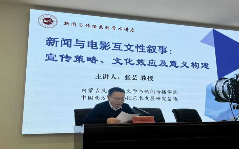 12月22日,文学与新闻传播学院邀请内蒙古师范大学张芸教授在图书馆诗歌研究中心作了题为“新闻与电影互文性叙事:宣传策略、文化效应及意义构建”的学术讲座。学院副院长孙艳艳、部分教师、新闻与传播相关方向研究生和新闻卓越班学生聆听讲座。讲座由学院新闻与传播学科带头人额尔很白乙拉教授主持。