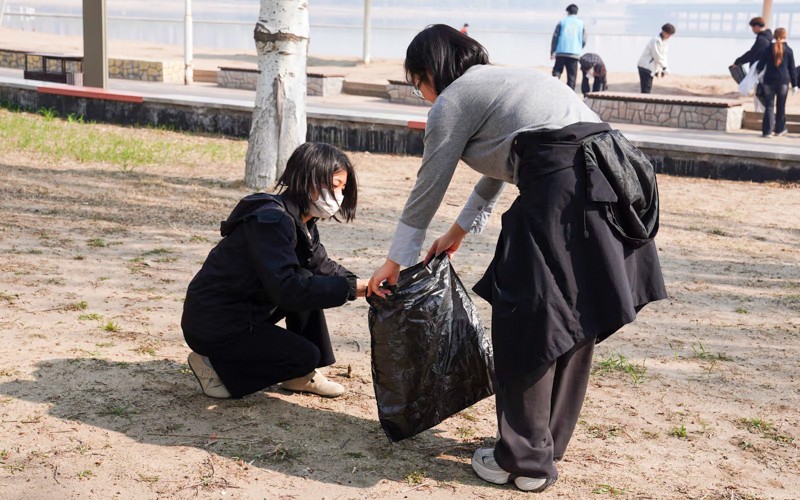 活动伊始,全体参与者集体热身后,沿西辽河生态步道完成1.2公里集体慢跑,在晨光中感受通辽市生态建设的丰硕成果。在随后的护河行动中,同学们分为5个志愿服务小组,手持专业清洁工具,对指定范围内的河岸线进行2个小时的地毯式清理,有效改善了沿岸生态环境。