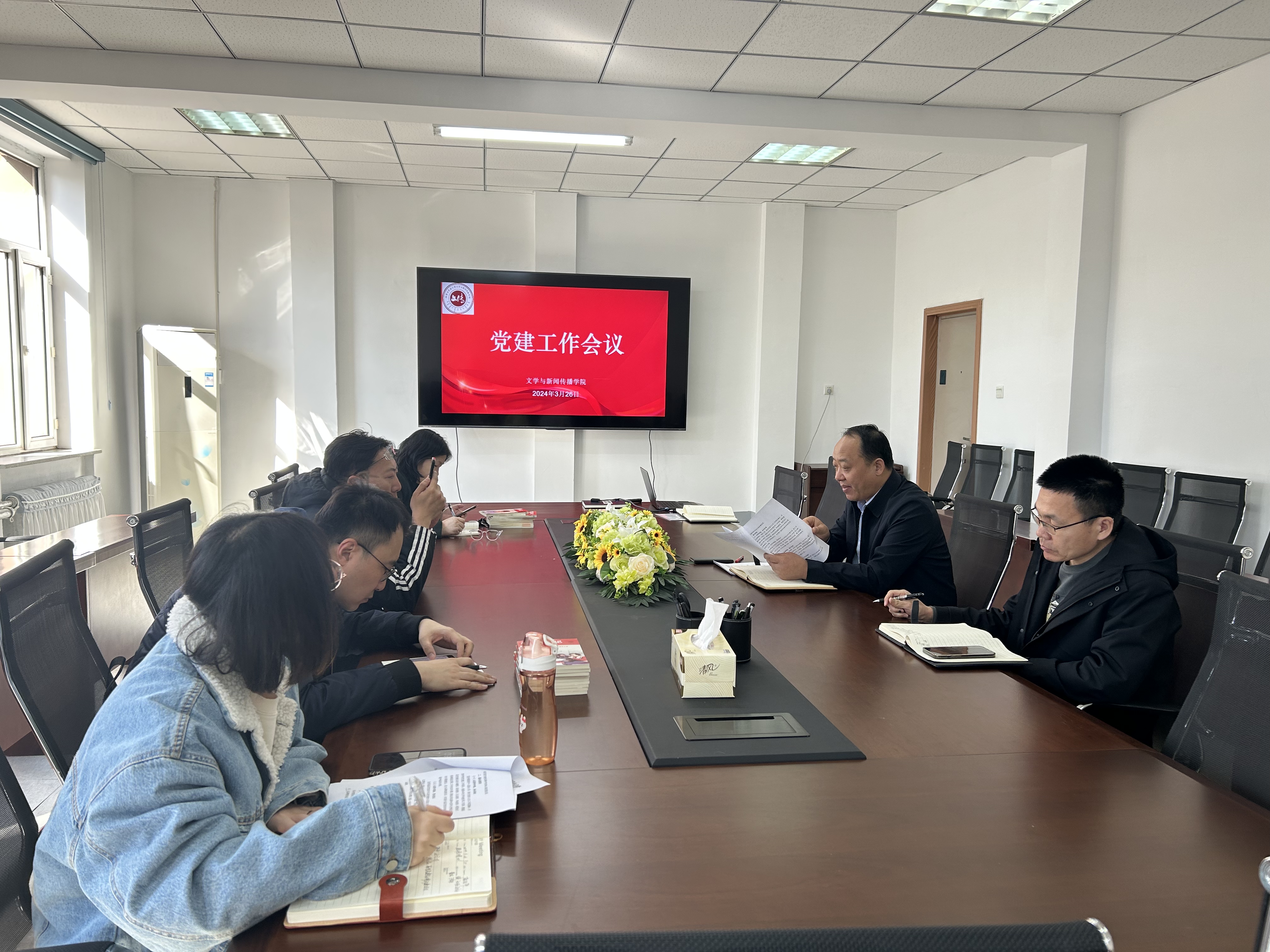 2024年3月26日,文学与新闻传播学院在思源楼203会议室召开了党建工作会议。会议由学院党委书记康相坤主持。党委副书记包宝柱、组织员张红艳、宣传委员兰英、教工一支部书记王双梅、教工二支部书记赵承钢、研究生支部书记董拓、学生支部书记韩诺敏参加了会议。