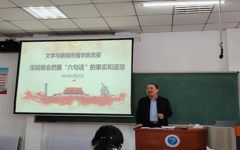 为巩固拓展学习贯彻习近平新时代中国特色社会主义思想主题教育成果,深入开展“感党恩、听党话、跟党走”群众教育实践活动,引导党员干部进一步统一思想认识,提高政治站位, 3月20日下午,文学与新闻传播学院党委在思源楼115教室召开集中学习会,深入学习“六句话的事实与道理”。学院全体教职工参加了学习会。党委书记康相坤主持学习会。