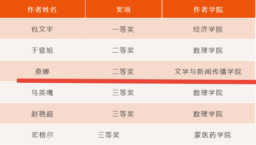 内蒙古民族大学红色筑梦之旅“我身边的‘第一书记'”暑期社会实践活动成功落下帷幕。经过评委们的仔细评选,通过个人调研报告并结合实际调研反馈,我院2019级新闻学2班查娜同学荣获二等奖。内蒙古民族大学“我身边的第一书记”暑期实践作品获奖名单如下所示: