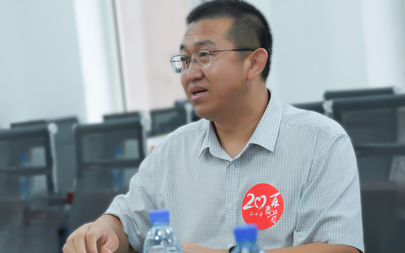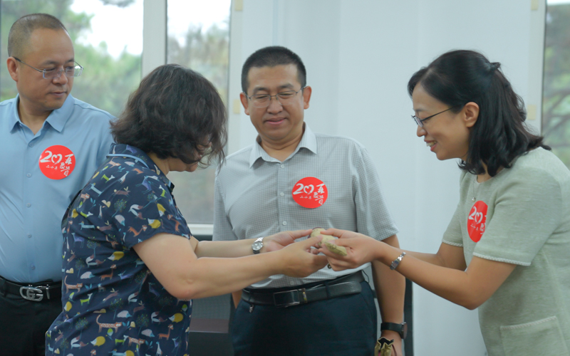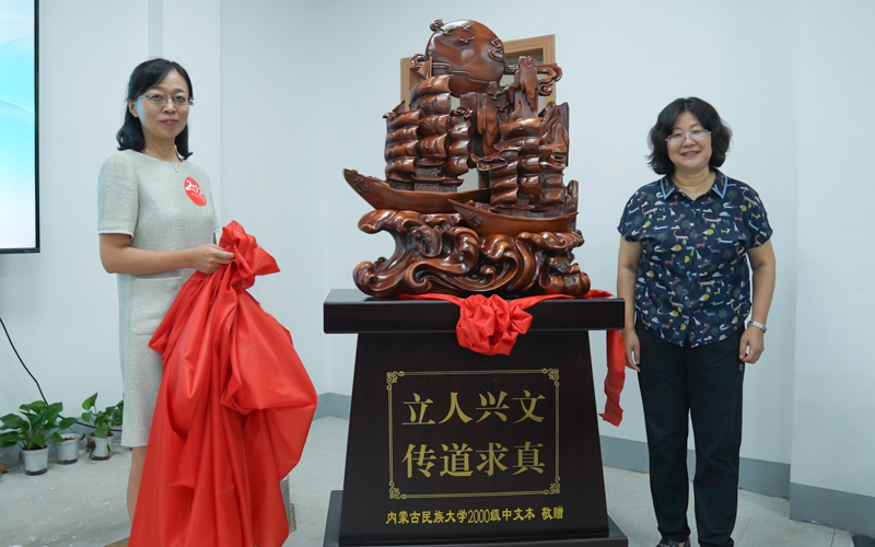 作为2000级中文本是内蒙古民族大学合校后的首届毕业生,大家围绕“我这20年”“继往开来”“立人兴文”等话题展开热烈讨论。跟老师一起回顾了首届校园艺术周和萤火虫戏剧社等难忘的经历,分享了自己在各自领域的奋斗历程和成功经验,他们的话语中充满了对母校的感激之情,也表达了对未来的期待和憧憬,并向学院赠送纪念品。