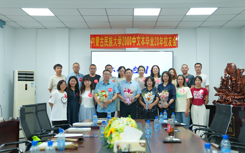 2024年8月10日,内蒙古民族大学文学与新闻传播学院2000级中文本科班校友座谈会在学院会议室举行,校党委委员、副校长王百涛,文学与新闻传播学院院长郝青云、副院长孙艳艳、二级教授于东新参加座谈。