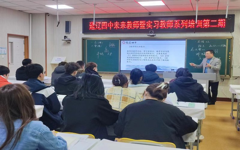 3月21日,文学与新闻传播学院2021级汉语言文学专业实习小组参加通辽四中未来教师暨实习教师培训第二期活动。本次培训由通辽四中语文特级教师、正高级教师何风波主讲,通辽四中党委书记、校长宋兆起,我院实习带队教师卢金明及9名实习生共同参加。