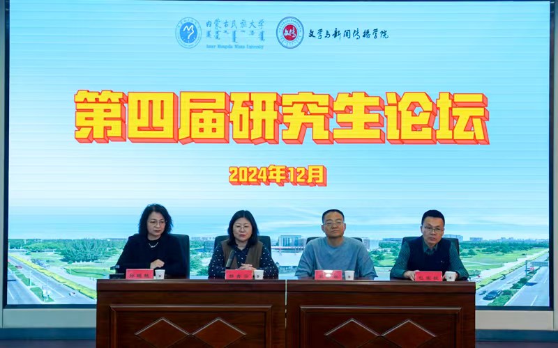 12月1日,文学与新闻传播学院于学校图书馆小报告厅成功举办第四届研究生论坛。学院党委书记王金双、党委副书记包宝柱、通辽市第一中学语文教学名师谢广才、中国古典文献学学科带头人杨金戈、文化与传媒(新闻与传播)学科带头人额尔很白乙拉、学科教学(语文)学科带头人卢金明及部分硕士生导师出席论坛开幕式,170余名研究生参加论坛。开幕式由学院副院长孙艳艳主持。