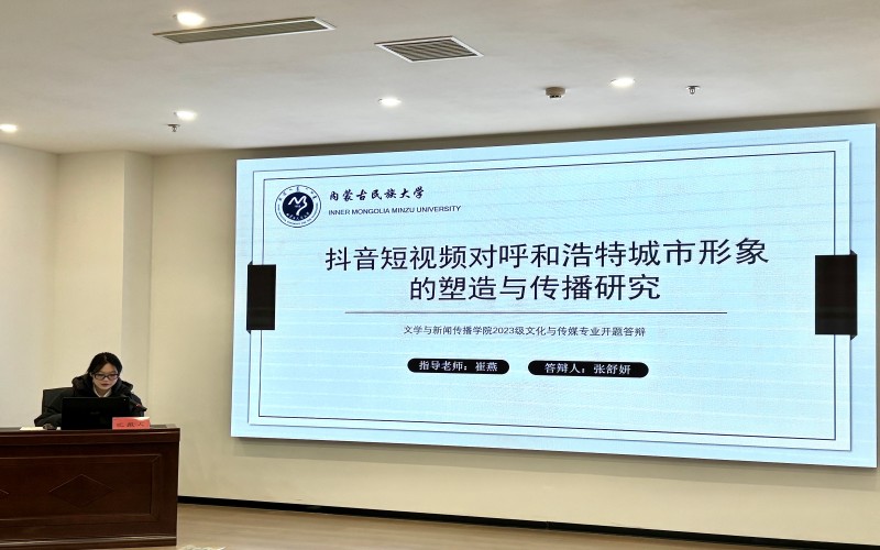2024年12 月 21 日,学院开展2023 级文化与传媒、新闻与传播专业硕士学位论文开题答辩会和 2022 级文化与传媒学术硕士学位论文中期检查工作。答辩会邀请内蒙古师范大学张芸教授担任答辩委员会主席,我院副院长孙艳艳、学科带头人额尔很白乙拉、学科导师赵作为、崔燕、关图雅担任答辩委员会成员,额尔很白乙拉主持答辩。