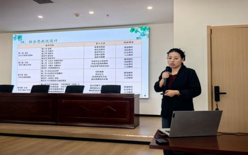 会上,在学校课程思政比赛中获奖的四位青年教师李想、安冉欣、武迪、胡日查毕力格依次上台进行说课及讲课展示。在15分钟的展示中,四位教师围绕学科特点及教学内容,深度剖析教材内容,提炼出丰富的思政元素,巧妙的将其贯穿于教学的每一个环节,生动地呈现课程思政的育人实践成果。