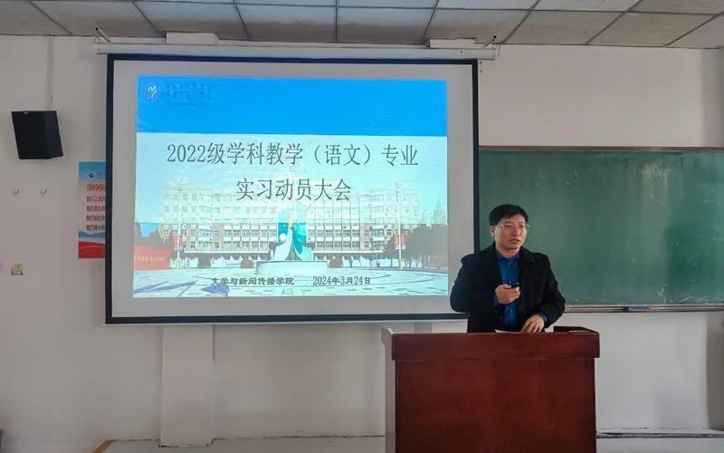 3月24日上午,文学与新闻传播学院在霍林河校区思源楼314教室召开2022级学科教学(语文)专业实习动员大会。会议由学科教学(语文)学科带头人卢金明副教授主持,学院语文教育教研室主任周坤副教授、陈元峰副教授、全体2022级学科教学(语文)研究生参会。
