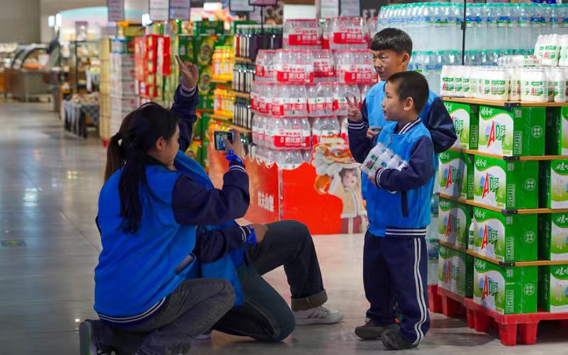 活动开始之前,志愿者们分成两队,分别由学院青年志愿者协会会长张磊和副会长王馥逊带领小朋友们一起前往摩尔城和西拉木伦公园参加活动。张磊带领的星宝一队进行的小游戏是“识图找物”,孩子们主动牵起志愿者的手,不断地在超市里搜寻图片上的物品。当遇到小朋友难以分辨的物品时,志愿者们耐心地给予提示;当小朋友认错物品时,志愿者们轻声温柔地做出提醒并进行鼓励;当小朋友找出正确的物品时,志愿者们大声地夸奖使他们更加自信。张磊说:“看到孩子们停住脚步,不断观察不同的物品,我比他们更紧张,直到他们找出与图片相对的物品,看到他们发自内心地笑,我们也不由自主地开心。”