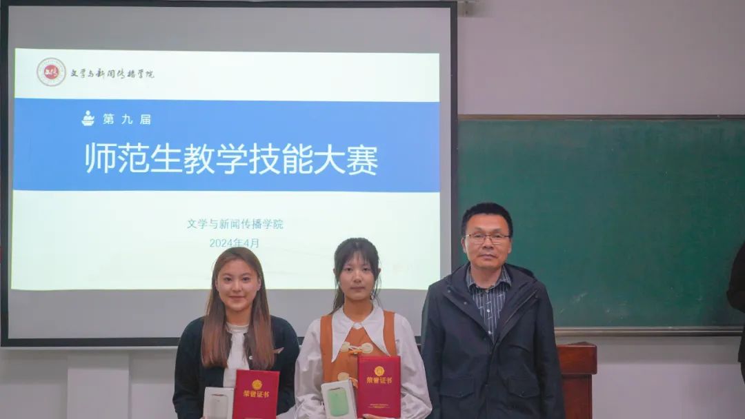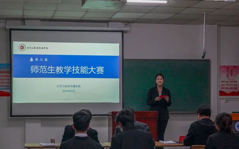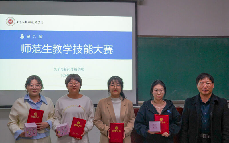 为提升学院师范生的教育教学能力,展示未来教师风采,文学与新闻传播学院于4月9日晚在思源楼 314 室举办第九届师范生教学技能大赛。文学与新闻传播学院党委副书记包宝柱参加并全程指导,语文教育教研室卢金明副教授、陈元峰副教授和周坤副教授担任评委。