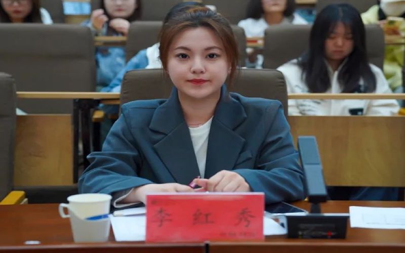 学生分会主席团成员李红秀为二等奖获奖者颁奖