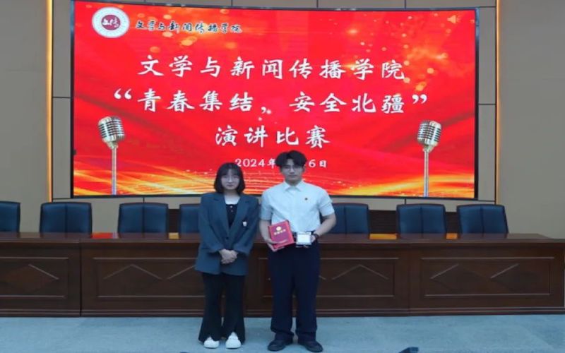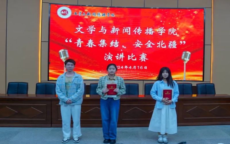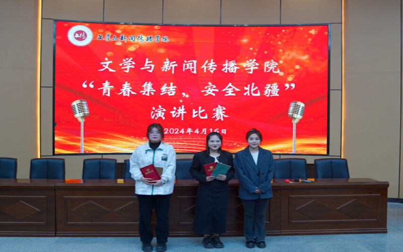 比赛中,选手们以饱满的激情紧紧围绕“青春集结,安全北疆”的主题,分别从家国安全、强国强军、青年担当、北疆建设等方面出发,结合时代发展、自身经历讲述了国家安全的重要性,抒发了对于北疆建设的美好愿景,真挚的感情感染了在场观众并赢得阵阵掌声。随后,三位评委对选手们积极向上的选题、充满激情的演讲以及能够表现自己的勇气给予了充分肯定,同时也指出了选手们普通话不够标准、与观众互动少、缺乏感染力等一些细节问题。经过激烈角逐和评委们的公正评选,2022级汉语言文学二班曾柯又荣获一等奖,2023级汉语言文学二班王鑫颖、2023级广播电视编导二班刘溢洋荣获二等奖,2023级汉语言文学一班杨小扬、2022级语言文学二班韩浩然荣获三等奖。