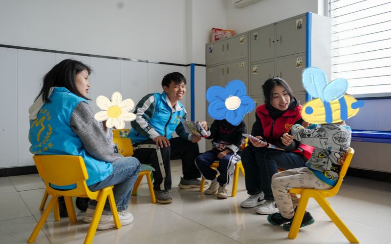 活动中,志愿者们与“天使之翼”特殊教育学校的孩子们一同围坐在教室里,共同阅读精心挑选的绘本,带领孩子们领略阅读的魅力,激发孩子们对知识的热爱和对未来生活的美好憧憬。