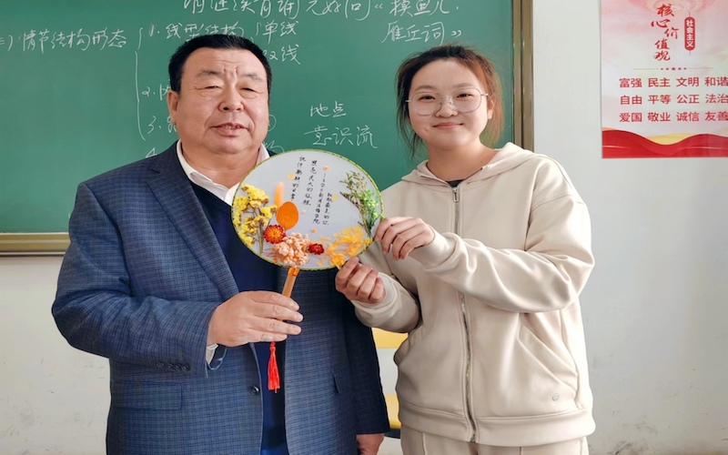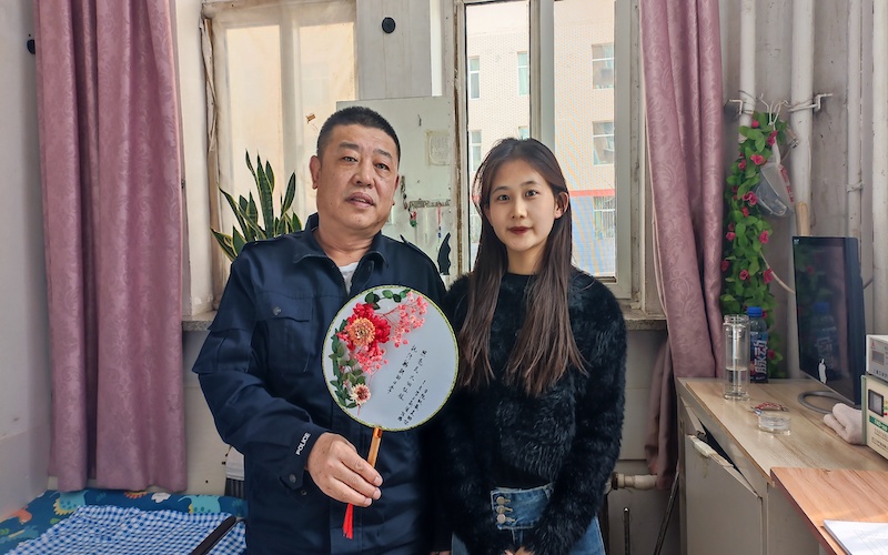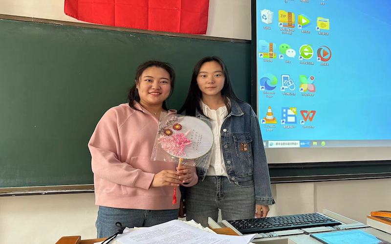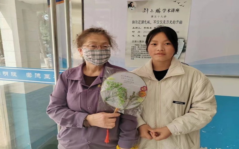 制作完毕后,学员们把精美干花团扇亲手赠送给一线教师、学工人员、宿舍管理员、食堂工作人员、清洁工人、快递员和安保工作人员等可敬的劳动者们。在走访赠送团扇的过程中,文传学子也在见证着、体验着不同工作岗位的不易与付出,并为每一位劳动者身上坚韧、温暖的力量深深动容。