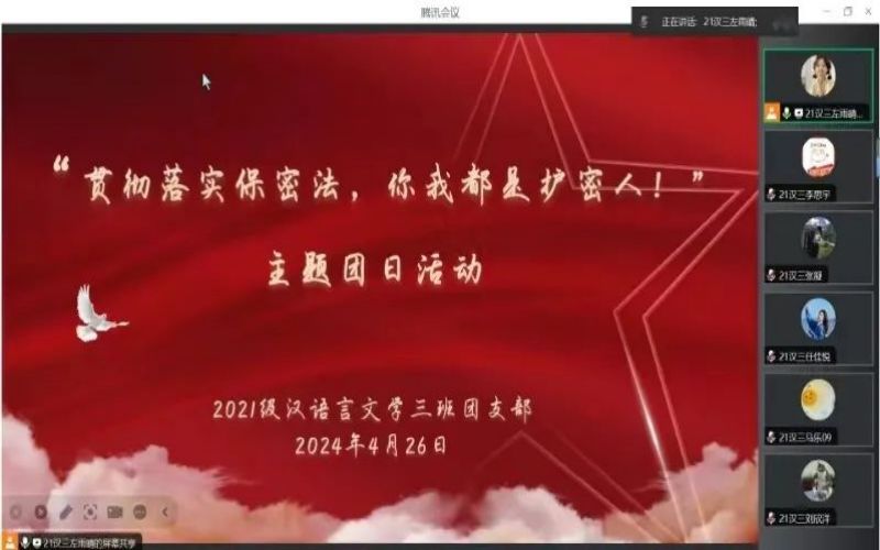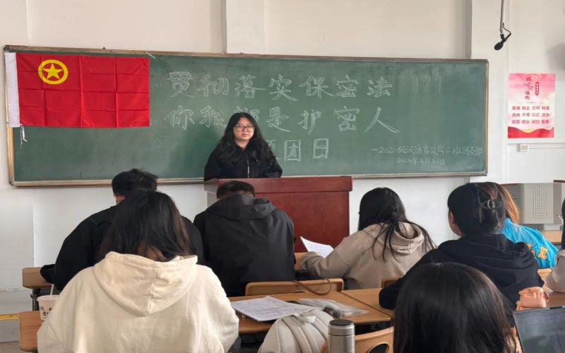 在各班团支部的精心策划和组织下,主题团日活动形式丰富多样且深入人心。2020级汉语言文学一班团支部通过知识竞答的形式深入学习了《中华人民共和国保守国家秘密法》;2021级汉语言文学二班团支部通过精心制作的PPT学习了国家保密法的相关知识;2022级汉语言文学二班团支部全体团员青年共同学习了《中华人民共和国保守国家秘密法》,并观看了2024年保密公益宣传片《一秒钟》,宣传片以生动直观的画面,深刻阐释时刻绷紧安全保密之弦、维护国家秘密安全的重要意义;2022级广播电视编导一班团支部开展了针对国家秘密及其密级的具体范围、标志以及保密期限等保密常识的现场答题活动,增强了同学们对国家秘密保密的自觉性和法治意识,使保密意识深入人心;2023级新闻学二班团支部全体成员共同学习《中华人民共和国保守国家秘密法》,现场以团小组为单位进行交流研讨,就如何在实际学习、生活、工作中更好地执行保密法进行了深入探讨。