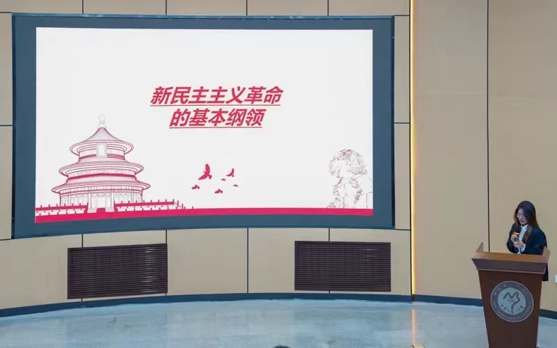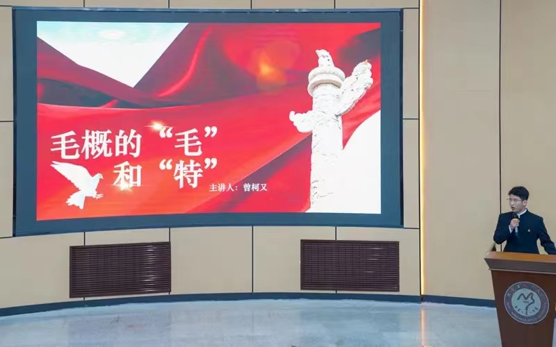 此次比赛分为两个部分,第一部分为《毛泽东思想和中国特色社会主义理论体系概论》课程大学生讲思政课比赛。在比赛中,参赛选手们紧扣主题,紧跟时事,声情并茂地讲述了先进理论思想的产生、发展与意义。他们的语言或铿锵有力或娓娓道来,用最真挚的情感展现了身为大学生应该担当的历史使命,他们的精彩演讲赢得了现场观众的阵阵掌声。