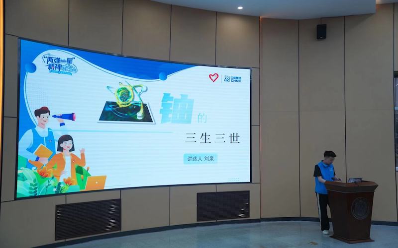 主持人赵欣冉向同学们介绍了宣讲团概况及“两弹一星”精神的独特内涵。团队成员包莹莹以“核力碳达峰,助力碳中和”为主题,结合现代应用实例,详细阐述了在全球气候变化的背景下,清洁能源体系在推动“双碳”战略中的重要作用,内容鲜明,紧跟时代步伐。刘泉将历史实例与详细的实物数据相结合,围绕“铀的三生三世”展开,从“核”的起源与发展,到核物质在日常生活中的应用以及核安全与环保对当今社会的重要意义等内容进行宣讲,内容科普性较强,讲解深入浅出。在交流互动环节,宣讲团为到场的同学们精心准备了承载着“两弹一星”精神的精美明信片和具有纪念意义的周边印章。