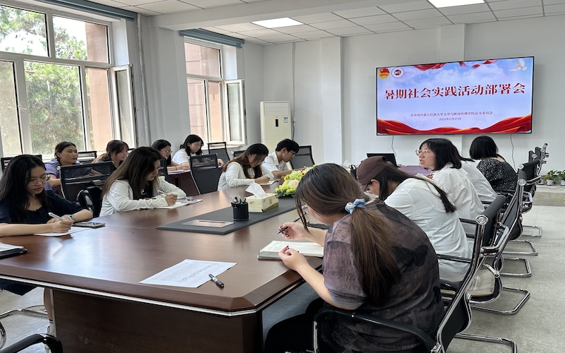 为深入学习贯彻习近平新时代中国特色社会主义思想和党的二十大精神,引导和帮助青年学生在社会课堂中受教育、长才干、做贡献,争做有理想、敢担当、能吃苦、肯奋斗的新时代好青年,文学与新闻传播学院于6月27日中午在霍林河校区思源楼203会议室组织召开2024年暑期社会实践活动部署会。会议由学院团总支书记韩诺敏主持,辅导员邱胜男和2021级、2022级、2023级全体本科生团支书参加会议。