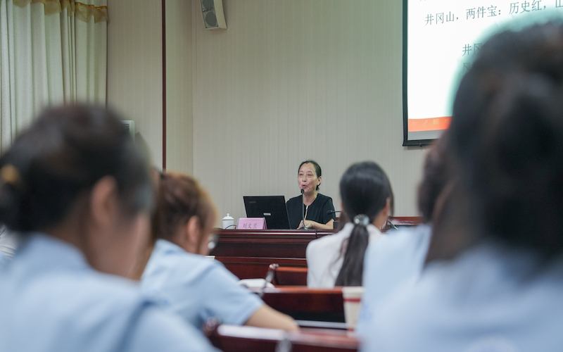 第四堂课,各高校的团队成员又回到了教育基地,参加井冈山斗争与井冈山精神专题讲座。刘文兰老师和各团队成员从井冈山斗争史的基本概况、袁文才和王佐被错杀之谜、井冈山精神的内涵及价值三个部分进行交流探讨,让同学们更深入地了解了井冈山斗争的历史背景、过程和意义,以及井冈山精神的核心内涵。井冈山精神是中国共产党人在井冈山斗争中创造的一种伟大精神,是中国共产党人的精神支柱,是中国革命精神的重要组成部分。在当今社会,井冈山精神依然具有重要的现实意义,始终鼓励着大家可以从井冈山精神中汲取力量,坚定信念,积极面对困难和挑战,不断创新和发展。