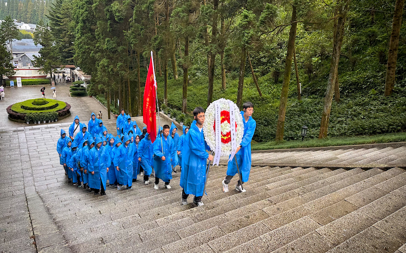 第二堂课,基地老师带领各宣讲团成员来瞻仰井冈山革命烈士陵园,向先烈们致以最崇高的敬意。陵园植被覆盖,主要种植着柏树和杜鹃。陵园整体建筑包括门庭、纪念堂、碑林、雕像园、纪念碑五大部分,整体既庄严又肃穆。大家跟着讲解员老师有序的在陵园里望青松、掠飞鸟,刻碑林、雕白玉,悼英魂、沉心静。立于绿树花丛中、纪念碑堂中、中国革命的摇篮中,脚下是一寸寸的热爱与不屈、心中灌满一波波信仰与愤慨。
