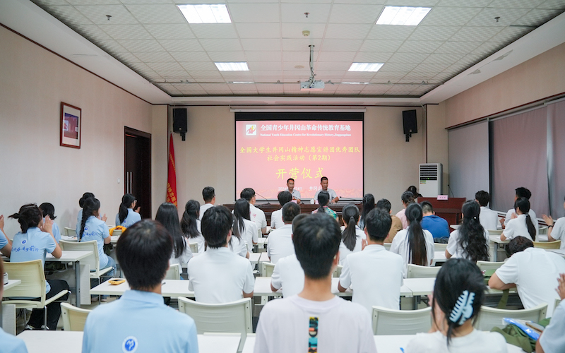 稍作休整,“星火接力,逐梦青春”井冈山精神宣讲团准时集合参加开营仪式。开营仪式上,团队全体成员带着对革命先辈的崇高敬意,高声奏唱了国歌,并认真领会了井冈山独特而重要的历史意义与现实意义。在开营仪式上,我校文学与新闻传播学院教师邱胜男作为学校代表进行发言,她强调,“星火接力,逐梦青春”井冈山精神宣讲团走进井冈山革命圣地,旨在追溯思想信念之源,补足精神之“钙”,从革命圣地汲取源头活水,追寻党的光辉足迹,感受信仰的伟大力量,从而进一步解放思想、统一认识,不忘初心、艰苦奋斗,实事求是、改革创新。