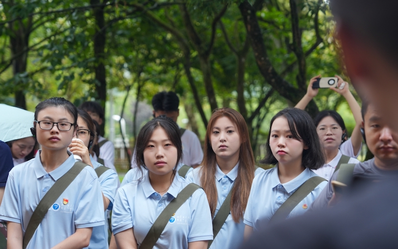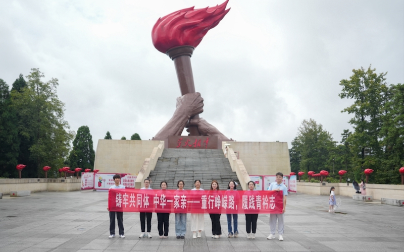 临近中午,各高校团队踩着一级级的阶梯,爬上海拔千米高的南山公园,参观南山火炬广场。这座国内红色主题雕塑象征着革命火种代代相传、永不熄灭。“星火接力,逐梦青春”井冈山精神宣讲团成员们在广场前与火炬合影留念,接过这份传承之火,承担起新时代青年的使命,为国家建设贡献青春力量。