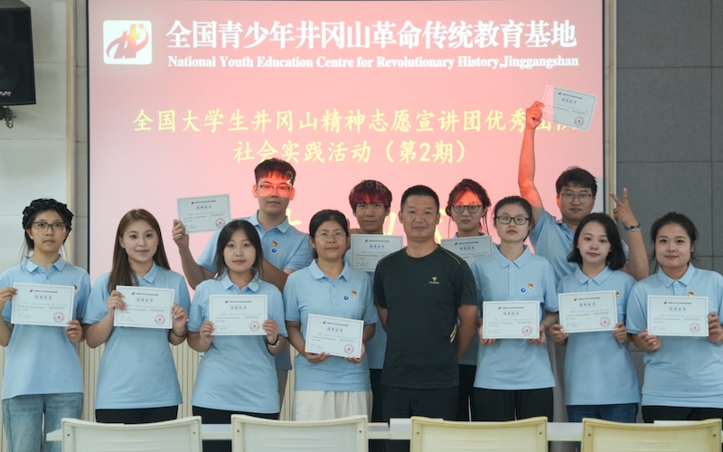 在嘹亮的团歌声中,此次为期5天的井冈山红色之行步入尾声,三组来自不同大学的学员在结业仪式上分享了此次研学心得,班主任为学员代表颁发结业证书。