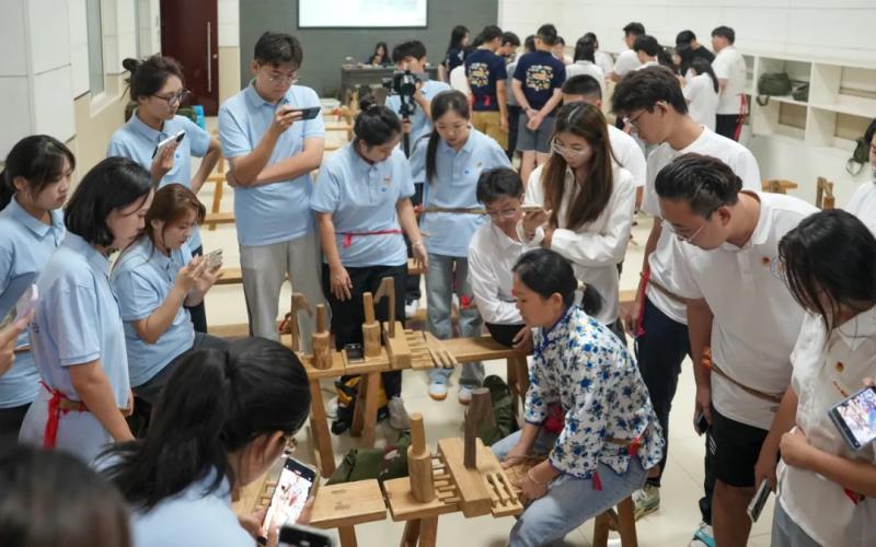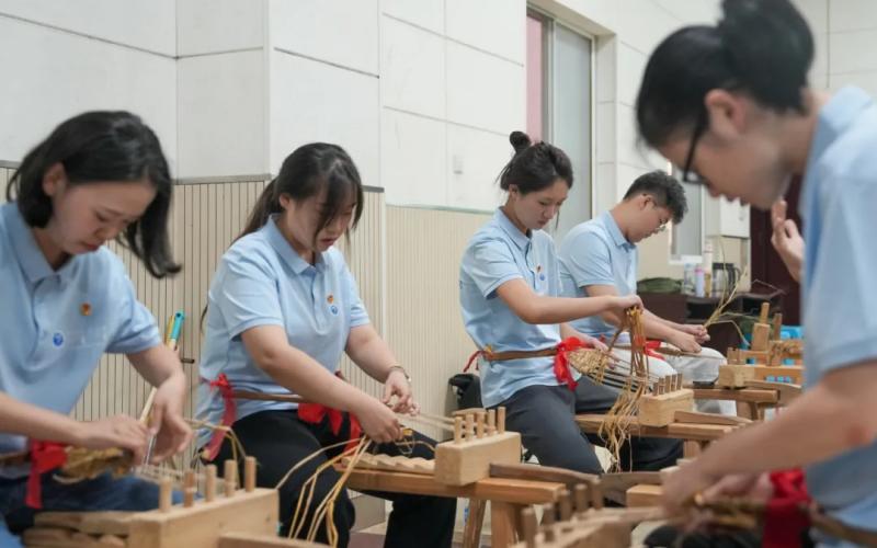下午,成员们满怀期待前往基地综合楼108教室进行编草鞋实践。在听过讲解并看过示范后,成员们尝试动手实践。在《十送红军》《红太阳照边疆》等红色歌曲的氛围中,大家相互帮助,感受着“军民鱼水情”的浓厚感情。