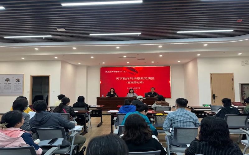 会上,孙艳艳带领教师们共同学习了《中华民族共同体概论》第四讲《天下秩序与华夏共同演进(夏商周时期)》的主要内容。她强调,新学期教师们应当深刻领会党的二十届三中全会精神中关于民族工作的政策规定,立足学院实际,着力推进和加强铸牢中华民族共同体意识体系建设,持续推动民族团结进步工作,促进各民族师生广泛交往交流交融,积极引导学生学有所思、思有所悟、悟有所行、行有所效,为强国建设民族复兴伟业共同团结奋斗。