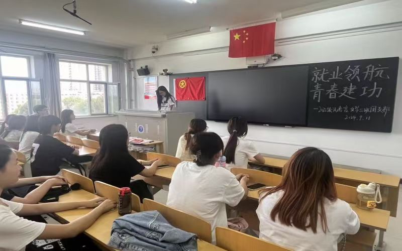活动中,各团支部结合专业特色和实际情况进行活动设计,形式丰富多彩。其中,2021级汉语言文学三班团支部以团支部内的地方公费师范生为例,组织公费师范生分享会,特别针对公费师范生的就业政策、就业方向以及如何在教育事业中发挥更大作用进行了详细地解读和讨论。2022级汉语国际教育班团支部积极利用互联网平台组织支部团员青年观看就业宣讲视频,聚焦不同职业的就业分析和市场趋势。2023级新闻学二班团支部通过接力诵读的方式学习了《新时代大学生就业指南》,支部成员一致认同要更好地了解当前的就业环境,提升就业竞争力,为实现青春建功立业打下坚实的基础。