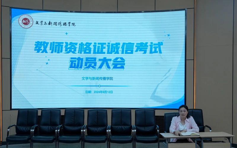 9月12日,文学与新闻传播学院在明理楼报告厅举班教师资格证诚信考试动员大会。此次大会由学工办主任兰英主持,参加教师资格证考试的全体同学参加会议。