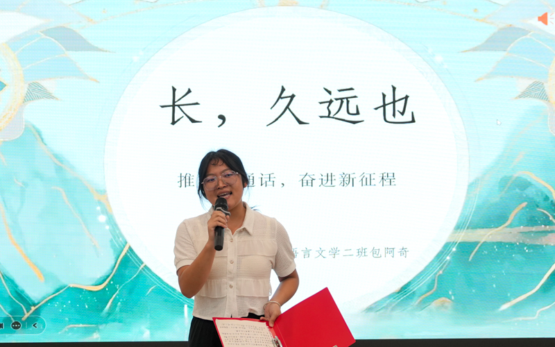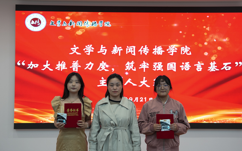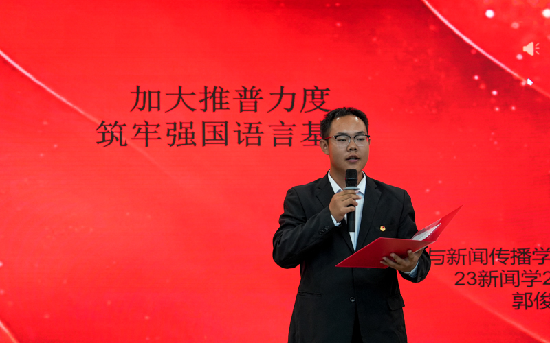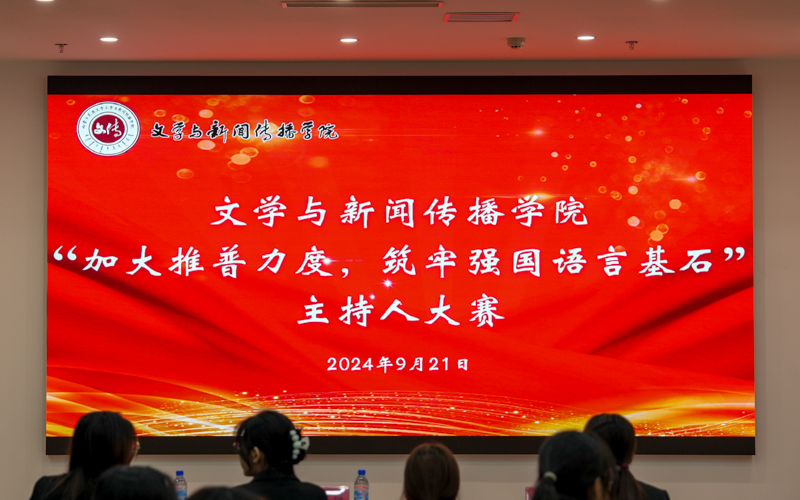 为深入学习贯彻党的二十大和二十届三中全会精神,深入贯彻落实习近平总书记关于教育的重要论述和关于语言文字的重要指示批示精神,全面落实立德树人根本任务,服务铸牢中华民族共同体意识,加大国家通用语言文字推广力度,提高师生使用国家通用语言文字的意识和能力,在第27届全国推广普通话宣传周到来之际,文学与新闻传播学院于9月21日晚在内蒙古民族大学图书馆内蒙古诗歌研究中心举行“加大推普力度,筑牢强国语言基石”主持人大赛。大赛邀请学院副教授赵承钢、学工办主任兰英、辅导员邱胜男担任评委,2022级广播电视编导二班厍超冉担任主持人。