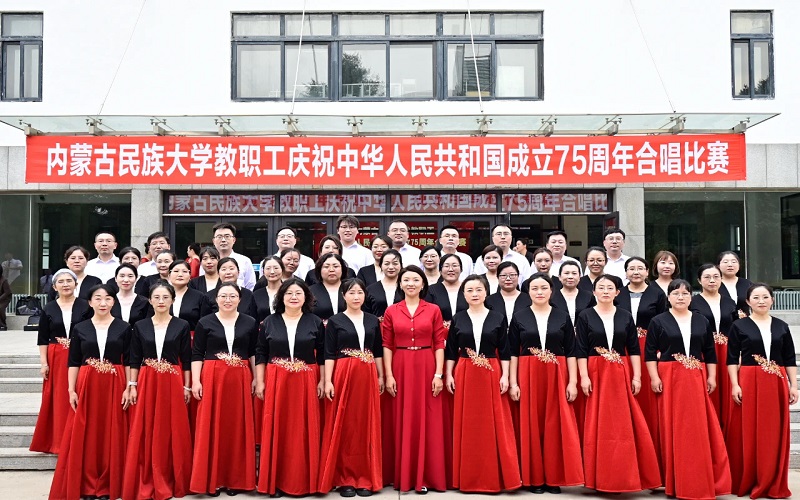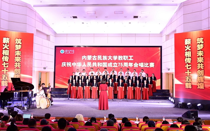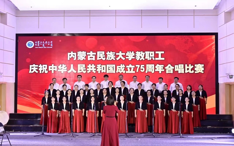 为庆祝中华人民共和国成立75周年,深入学习贯彻党的二十届三中全会精神,引导全校教职工以歌声歌颂新中国、唱响新时代,弘扬校园文化,激发爱国爱校情怀,凝聚力量推动学校事业高质量发展,9月29日,我校在西拉木伦校区举办内蒙古民族大学教职工庆祝中华人民共和国成立75周年合唱比赛。文学与新闻传播学院教职工合唱团在比赛中以饱满的热情、嘹亮的歌声,荣获三等奖。