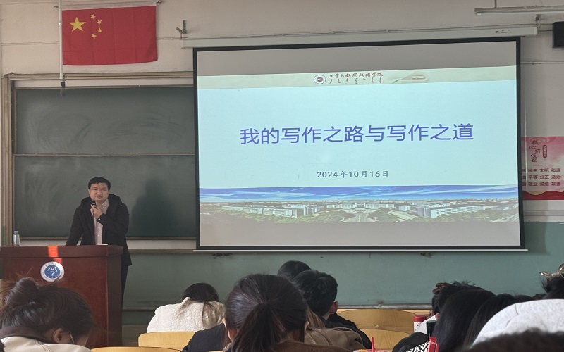 为进一步指导学生提高创意写作的技巧与能力,使学生能写会写,能教会教,文学与新闻传播学院于2024年10月16日在博学楼104开展“我的写作之路与写作之道”主题讲座。此次讲座由知名青年作家何君华主讲,卢金明副教授主持,学院学科教学(语文)专业全体硕士研究生参加。