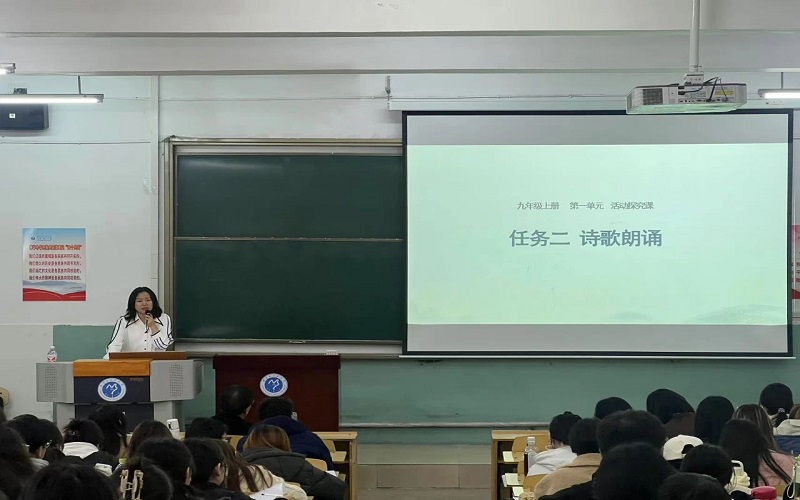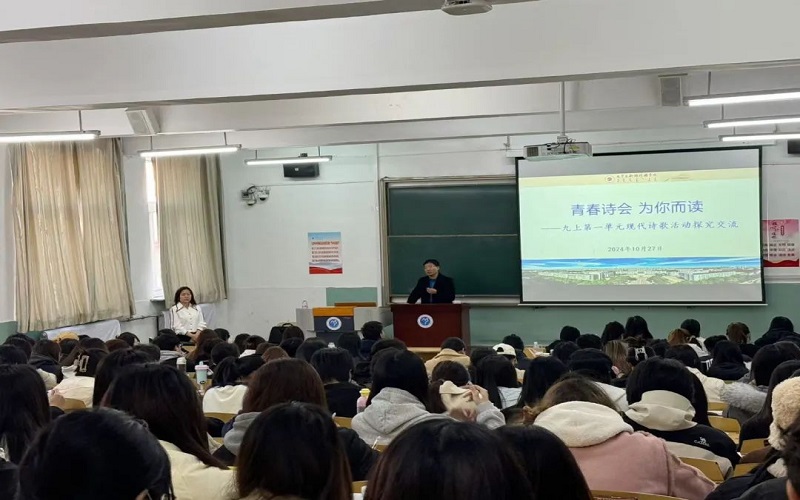 为深入探索诗歌教学的创新方式,激发学生的诗歌创作热情,文学与新闻传播学院于2024年10月27日在博学楼104教室举办了“青春诗会,为你而读”诗歌教学讲座。此次讲座特邀通辽市第二中学的白静老师主讲,卢金明副教授主持,学院汉语言文学专业本科生与学科教学(语文)专业研究生参加。