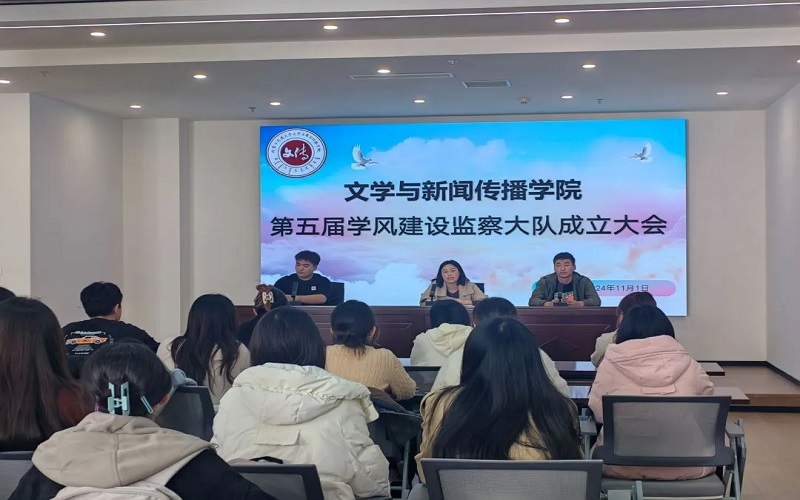 为进一步加强学院学风建设,提升学生干部整体素质及工作效率,同时促进学院各项工作的顺利开展与深入实施,11月1日中午文学与新闻传播学院在图书馆内蒙古诗歌研究中心召开第五届学风建设监察大队成立大会。学院学工办主任兰英,辅导员乌力吉以及大队学生干部共计七十余人参加。