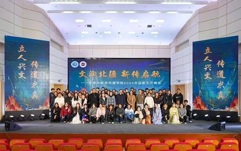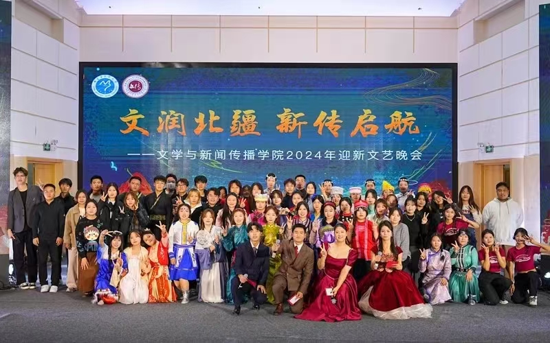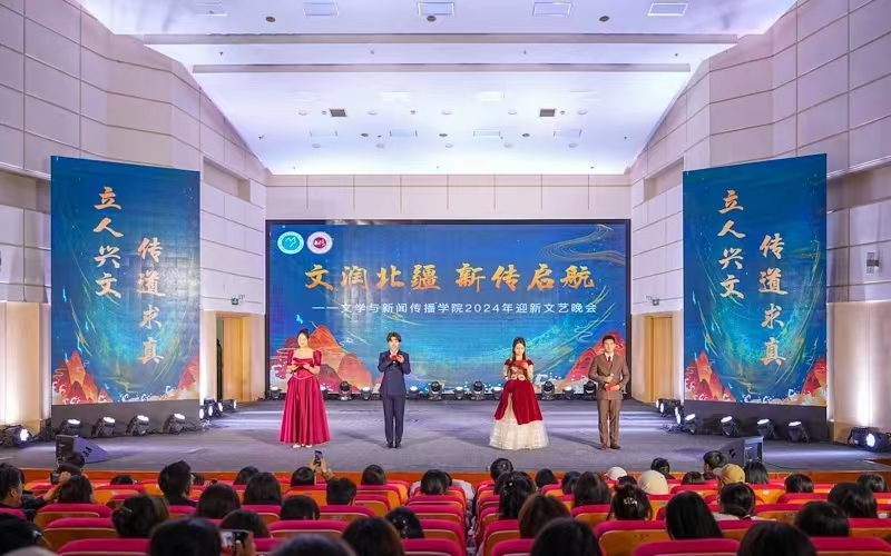 为欢迎2024级新同学,营造良好的校园氛围,推动校园精神文明建设,增强对学院的归属感与师生凝聚力,11月5日晚,文学与新闻传播学院在逸夫楼音乐厅举办“文润北疆,新传启航”2024年迎新文艺晚会。内蒙古民族大学学生处处长尚丹、副处长郝建辉、团委副书记王强,学院院长郝青云、党委副书记包宝柱、副院长孙艳艳和全院400余名师生欢聚一堂,共赴这场青春盛宴。