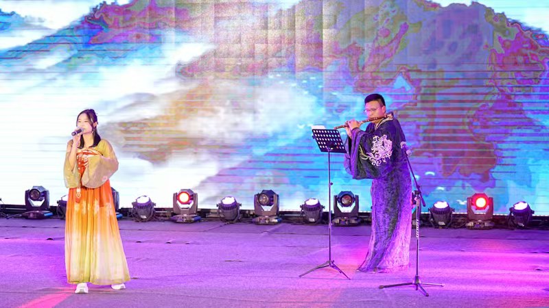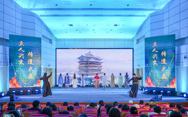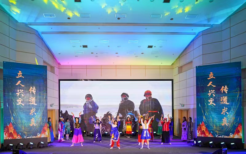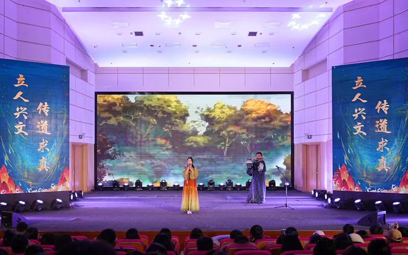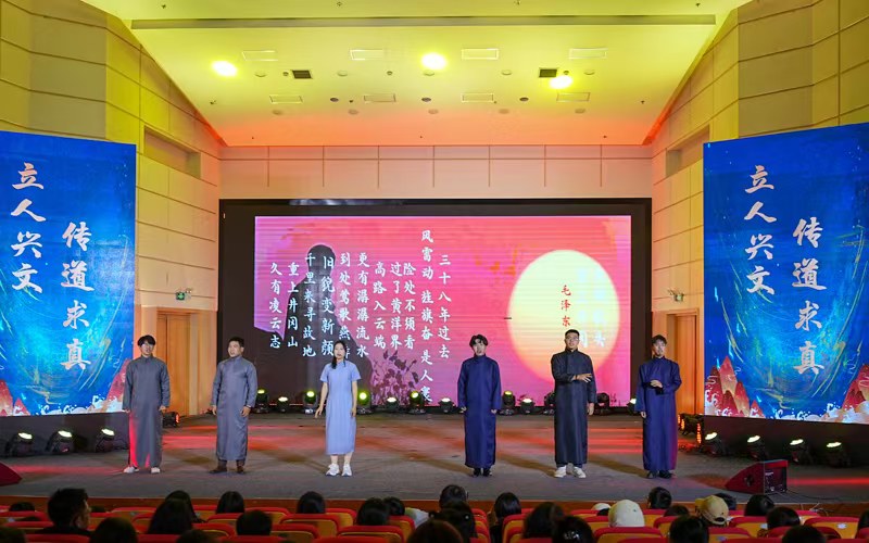 整场晚会高潮迭起,不仅展现了文学与新闻传播学院师生昂扬向上的精神风貌与深厚的专业素养,进一步铸牢中华民族共同体意识,更彰显了文传师生浓厚的家国情怀与对中华优秀传统文化的传承与弘扬。
