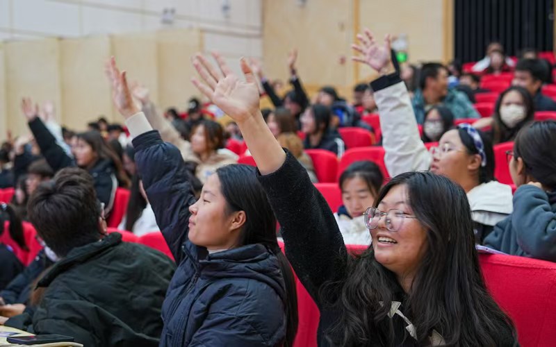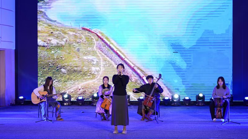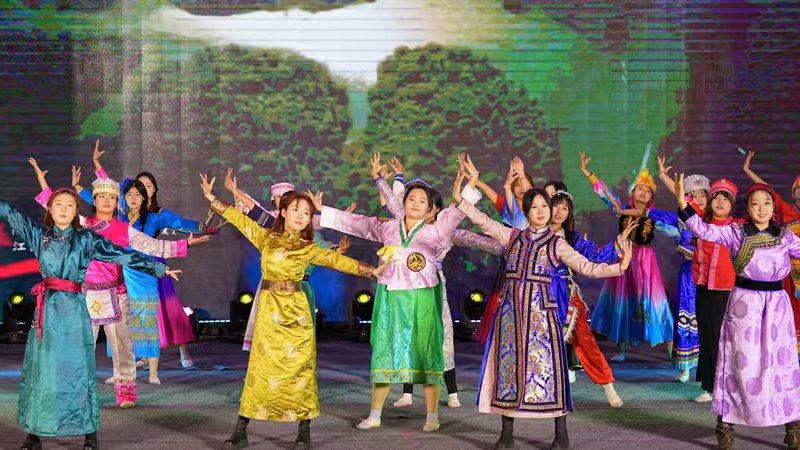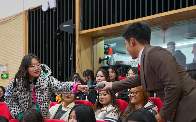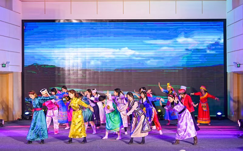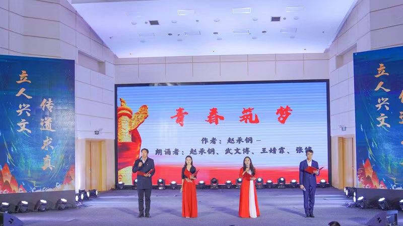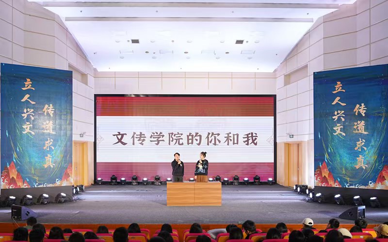 晚会节目涵盖舞蹈、歌曲串烧、诗歌朗诵、舞台剧等形式。序幕拉开,开场舞《舞动青春》动感十足,洋溢着青春的活力;相声节目《文传院的你和我》,诙谐幽默,逗得全场笑语盈盈;古琴演奏《梅花三弄》、独唱加竹笛吹奏《山鬼》旋律悠扬;朗诵《燎原之势》《青春筑梦》慷慨激昂,字字铿锵,句句深情;舞台剧《何时复归家》情感饱满,赢得了现场雷鸣般的掌声;舞蹈《辉煌共舞·民族团结魂》用优美的舞姿展现出民族舞蹈的魅力与民族团结共同进步的美好景象。在晚会的欢声笑语中,特别围绕中国共产党史、专业知识、学校历史等内容设计了有奖问答互动环节,同学们热情高涨,欢呼声不断,感受到了学院的温暖与关爱。晚会在大合唱《站在草原望北京》的歌声中渐渐落下帷幕,全场掌声如潮,轰鸣不息,经久回荡。民族团结的力量与青春的激情,永远镌刻在了每个人的心中。
