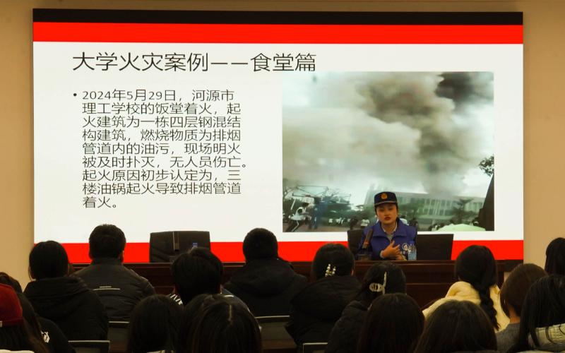张雨通过列举大学校园中发生的真实火灾案例,讲解了火灾的危害和预防要点,介绍了消防器材的使用方法。此外,张雨还详细讲解了社会上存在的各式各样火灾安全隐患,传授了火灾发生时的逃生技巧,以及如何正确选择逃生路线、如何避免吸入浓烟、如何选择安全合格的电器等消防安全知识。