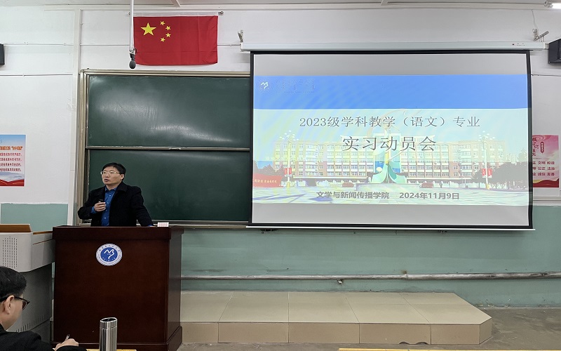为进一步明确实习目标,增强学生的实习意识,确保同学们能够充分准备并有效提升自身的教学能力和职业素养,文学与新闻传播学院于2024年11月9日下午在霍林河校区博学楼104教室召开了2023级学科教学(语文)专业实习动员大会。会议由学科教学(语文)学科带头人卢金明副教授主持,学院语文教育教研室主任周坤副教授、陈元峰副教授以及全体2023级学科教学(语文)研究生参会。