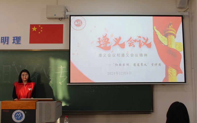 胡秀梅通过回顾介绍遵义会议的历史背景,向同学们详细介绍了会议内容,并由此引出了遵义会议伟大的历史意义,她讲道,坚定信念是伟大转折的根本精神力量,坚持真理是伟大转折的根本的世界观和方法论,独立自主是伟大转折的根本实现途径,而团结统一是伟大转折的制度、纪律和作风保障,这些便是伟大转折的“密码”—— 遵义会议精神。宣讲过程中,宣讲人邀请同学们将自己心中的遵义会议图景描摹出来,让同学们更加深刻领悟到遵义会议召开的重要意义。宣讲最后,大家齐诵遵义会议诗歌,同学们积极表示,在中国革命危急关头,全党全军不恐慌不懈怠不放弃,理想信念坚如磐石,生活在今天的我们,更应该努力拼搏,齐心协力,戒骄戒躁,弘扬伟大的爱国主义精神,投身于社会主义建设当中。
