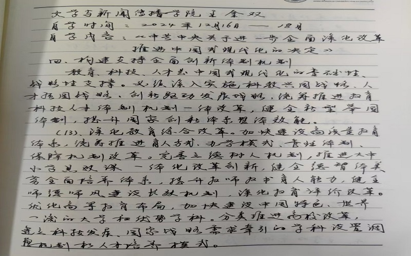 文学与新闻传播学院领导班子党的二十届三中全会精神学习笔记