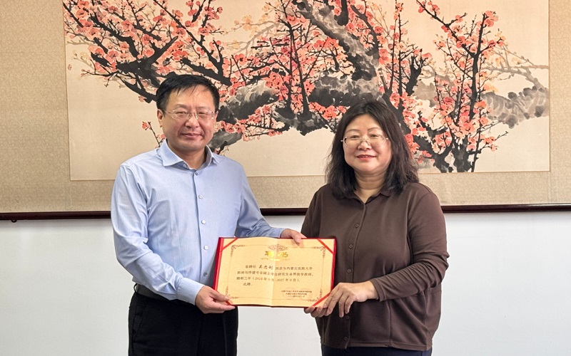 郝青云全面介绍了学院总体发展情况,提出了以学生培养为切入点的全方位合作计划,并为通辽市融媒体中心六位资深媒体人颁发了新闻与传播硕士专业学位研究生业界指导教师聘书。