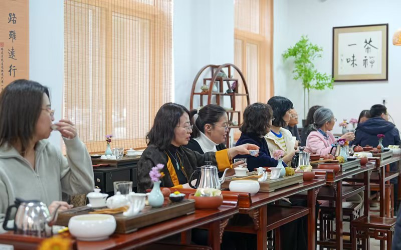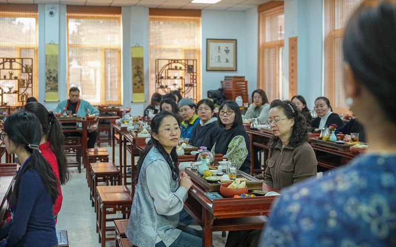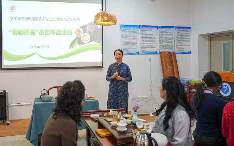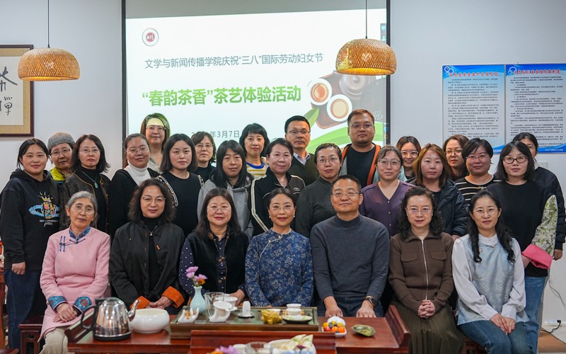 在第115个“三八”国际劳动妇女节来临之际,为丰富教职工业余文化生活,增强团队凝聚力,2025年3月7日下午,文学与新闻传播学院于思源楼茶艺室举办了一场题为“春韵茶香”的茶艺体验活动,旨在让大家感受茶艺之美、传承弘扬中华优秀传统文化。学院领导班子全体成员和部分师生代表共30余人参加了此次活动。