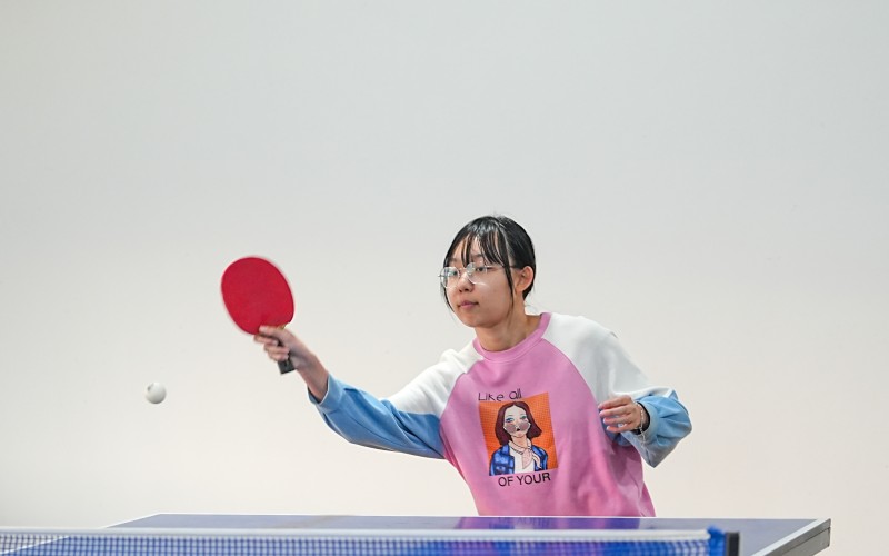 此次比赛采用每局11分,五场三胜制,设有团体赛和个人赛两个项目。比赛现场气氛热烈,选手们全神贯注,每一次挥拍、扣杀都充满了力量与技巧。赛场上,选手们灵活走位,巧妙地运用各种战术,时而大力扣杀,势如破竹;时而轻吊短球,出其不意,你来我往间,比分始终紧咬。精彩的对决引得现场观众阵阵喝彩,掌声不断。经过多轮激烈比拼,最终我院2022级广播电视编导一班康梓涵同学凭借出色的发挥,荣获女子单打第四名的优异成绩。